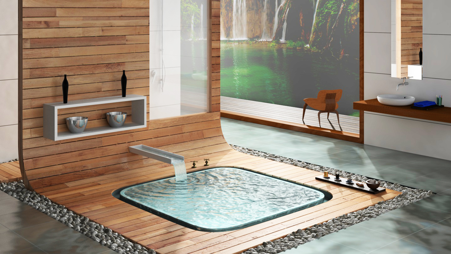 Bello! :D Sempre meglio Morph! :D Comunque ci sono delle cose che ritoccherei... Per esempio abbasserei di un pelo lo speculare del legno intorno alla vasca e magari anche il glossiness(c'è in AR? Io sono abituato con Vray...). Poi curerei di più il legno del finestrone e del lavabo... non si notano venature, è un po' surreale e, come hanno già detto, forse troppo saturo.. Per il resto ottimo lavoro! :D Quoto tutti per i sassi, sono spettacolari! :shock: :D