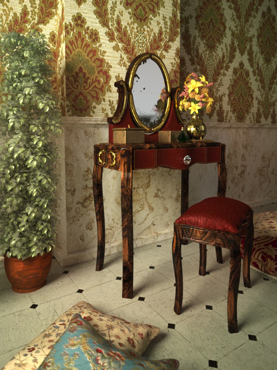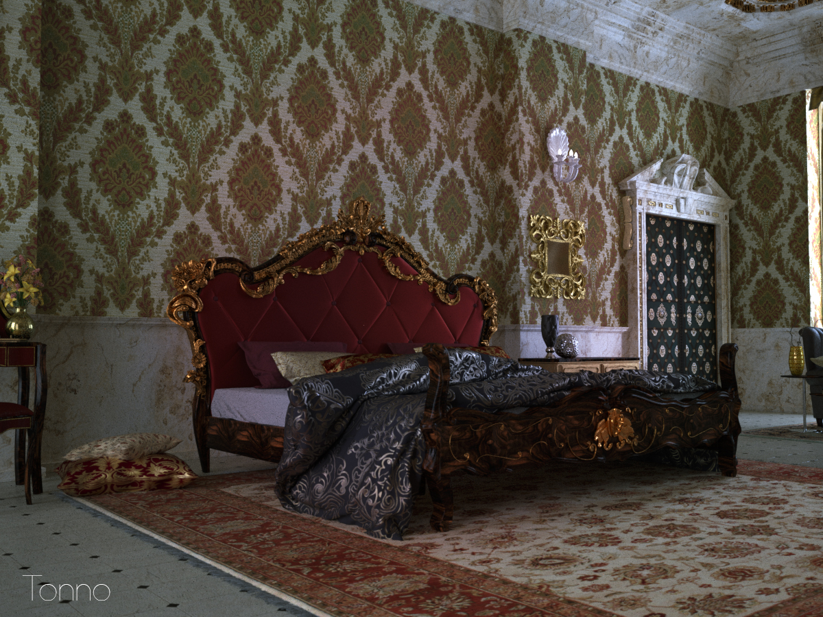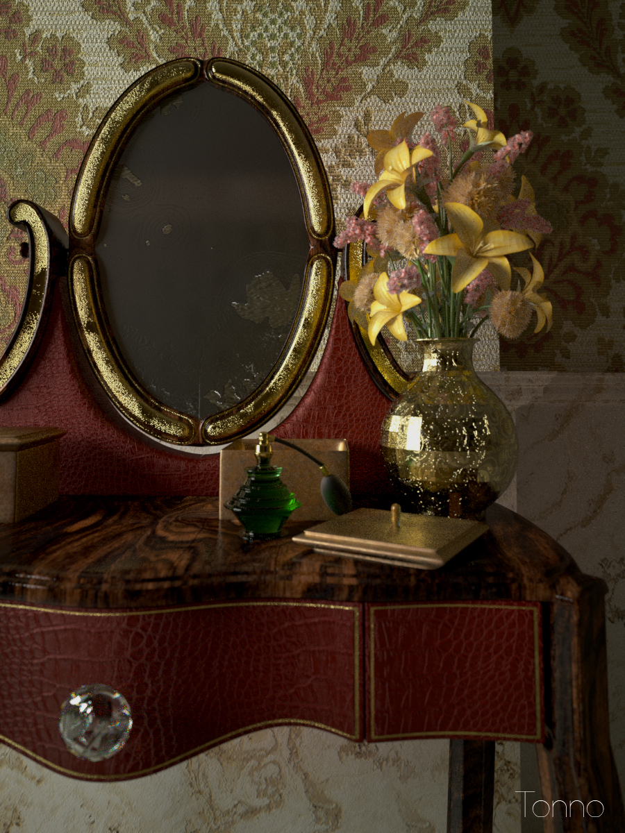 Trovo sempre un po' esagerato il Bump su alcuni materiali, come la cornice dorata dello specchio nella terza immagine, ma trattandosi di Maxwell non sono sicuro se è il bump o doveva cuocere altre 20000 ore!!!