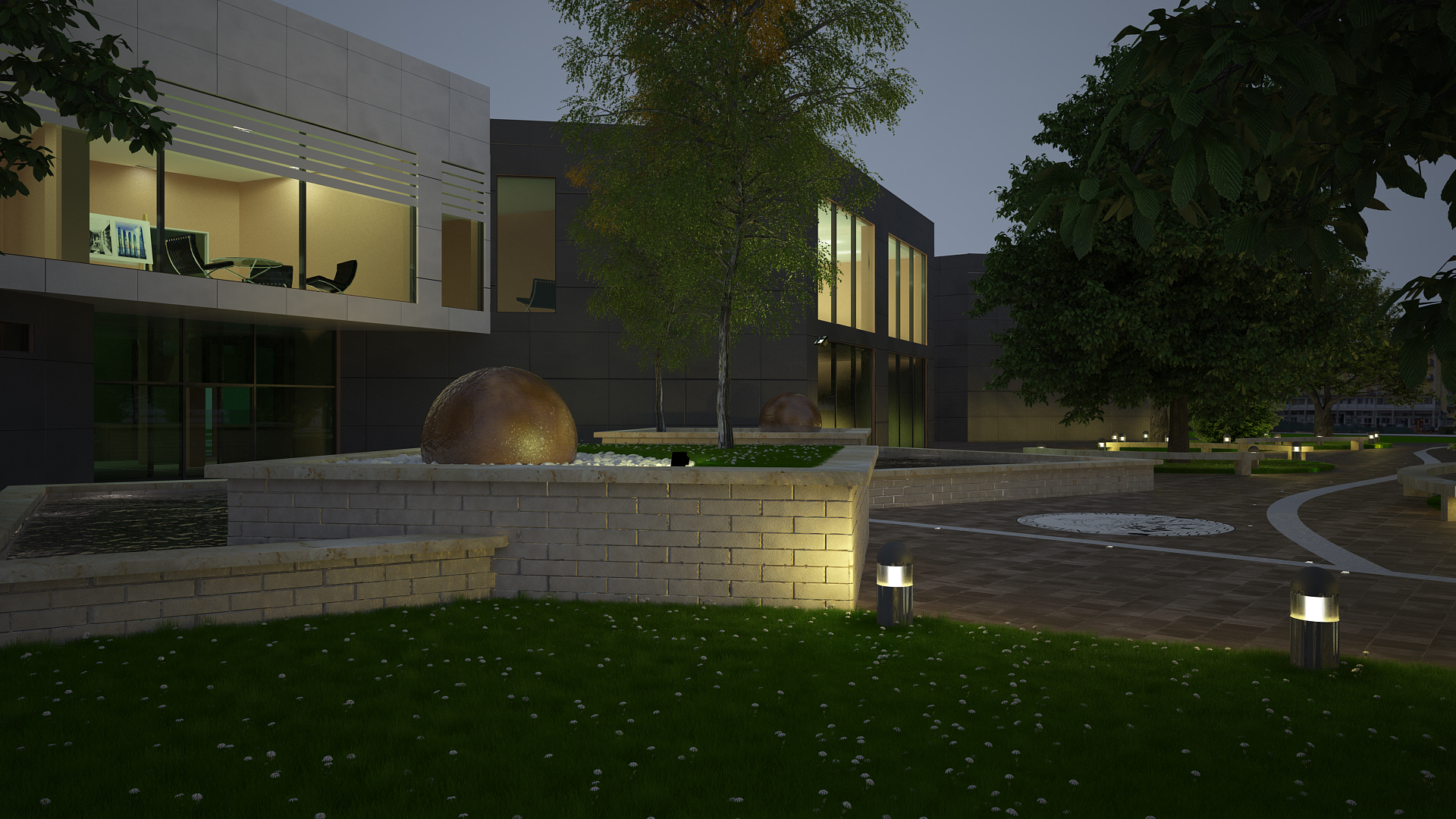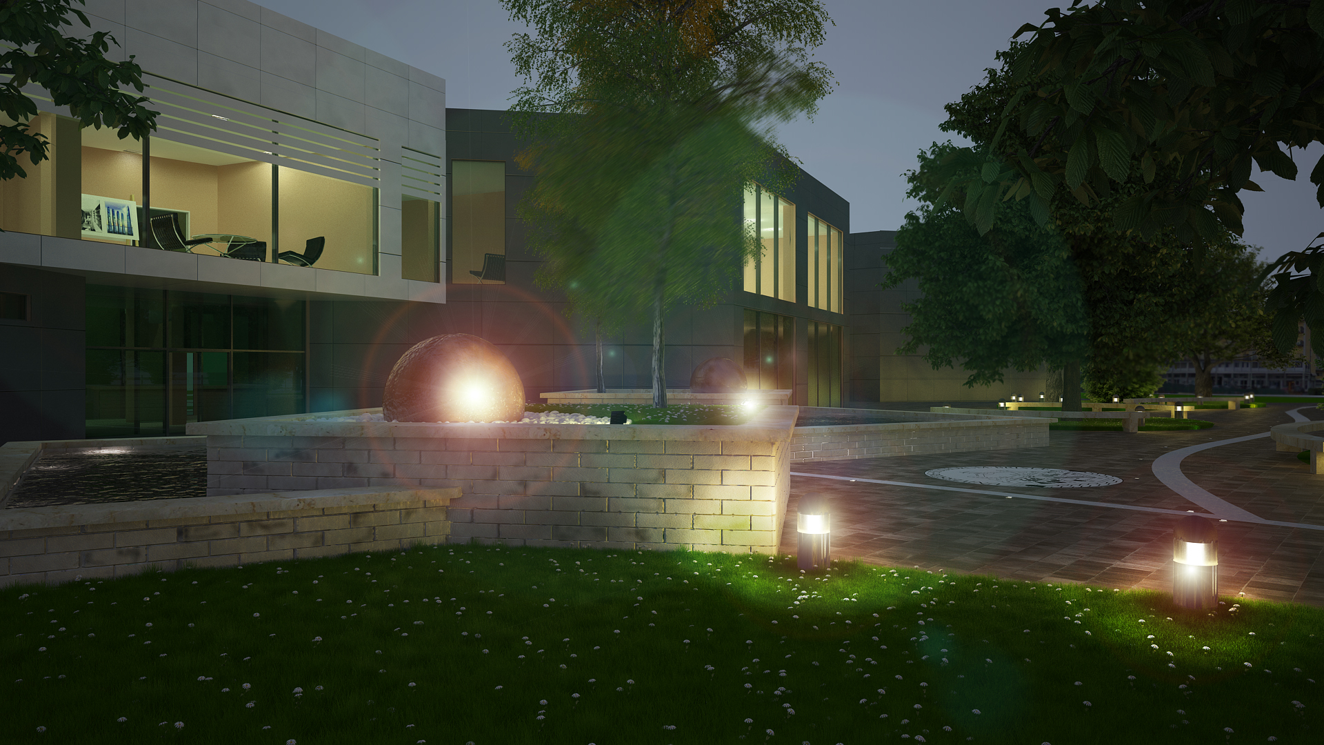 Enzo parere personale....l'effetto l'ente lo trovo veramente eccessivo..distrae troppo dall'immagine e lo trovo un pò fastidioso personalmente...altra pignoleria...nell'interno dove ci sono le sedute Barcellona...si vede si l'effetto luce ma manca la lampada...a meno che non siano faretti..potresti forse illuminare l'acqua della vasca maggiormente crando l'effetto di trasparenza luminosa data da luce + faretto..proverei anche a cambiare leggermente il cielo per dargli un pò più vita senza però esagerare altrimenti anche quello potrebbe finire per sviare troppo...l'illuminazione del lampioncino in basso a destra la trovo molto bella..poi come ti è stato detto sopra potresti sporcare leggermente di più la scena per renderla più reale...non so a me ad esempio viene in mente qualche foglio per strada oppure qualche foglia degli alberi non sarebbe male nemmeno...noto anche che mancano i cassonetti ...quindi ho riempi i muretti di bottiglie o metti i cassonetti eheheh...ad ogni modo queste sono pure opinioni personali ed accorgimenti a dire la verità forse nemmeno troppo tecnici ma elargiti da un profano =) continuo a seguire buon lavoroenzo_87 wrote:mmmmm....ecco cosa ho ottenuto...non valgo molto nella post produzione