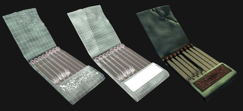 Scatola e fiammiferi arrivano, senza hyper, attorno ai 900 poligoni, se conto anche le schegge e le capocchie dei fiammiferi arriviamo complessivamente attorno ai 2000 poligoni.