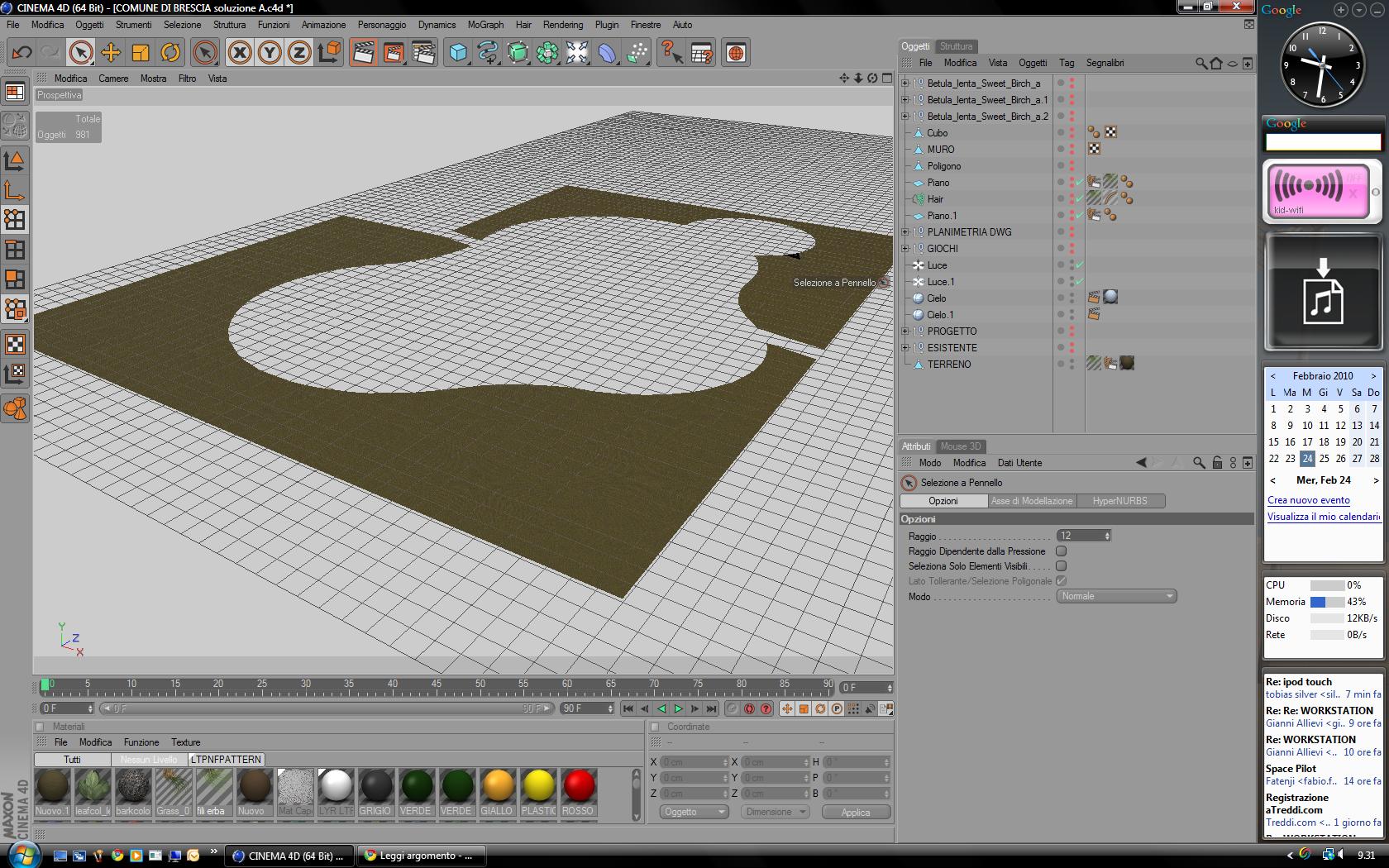 allora..sto costruendo in 3d un parco con un'area giochi al suo interno..tutto bene fin'ora, ma ho un problema nella creazione del prato..volevo sapere se si può inserire hair su una superficie complessa tipo quella nella seconda foto? (ho reso editabile un piano e poi ho adattato i poligoni )
