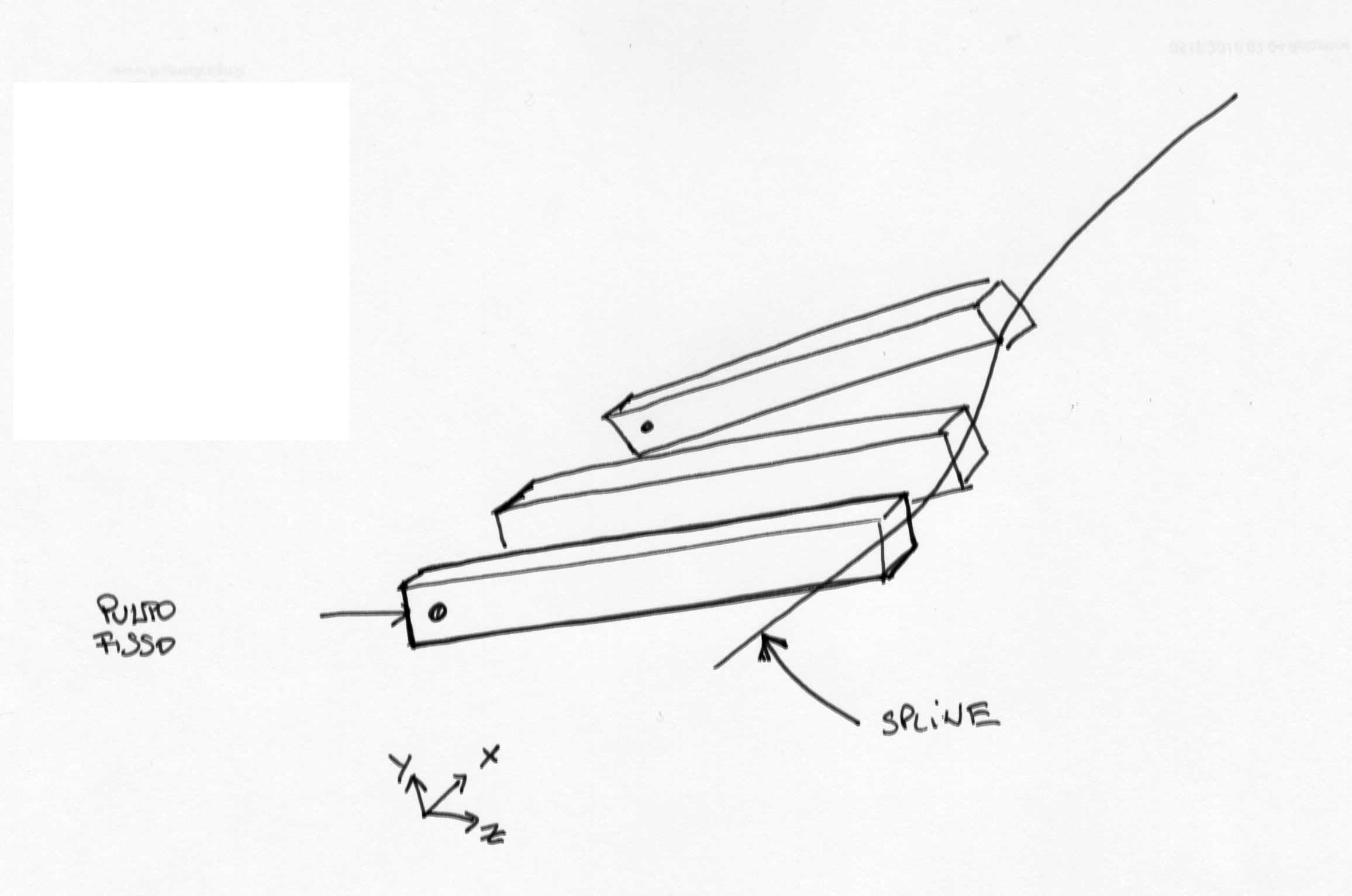 Ora devo mantenere una estremita di questi parellepipedi con posizione fissa la quale fungerà da perno, mentre l'altra estremità dovrà seguire una spline.
