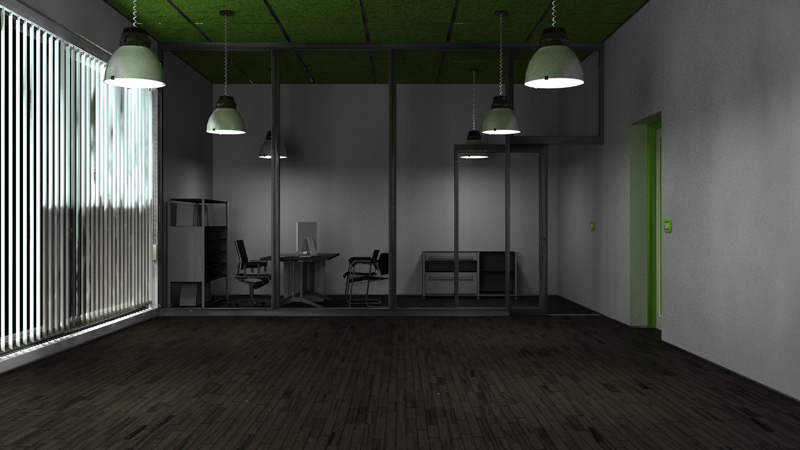 mi sembrava ora di postare qualcosa di nuovo. Un ufficio. sono partito da un'immagine che mi serviva per della didattica, ma poi c'ho preso gusto. Lo seguirò sulla falsa riga del Laboratorio di Rendering. Mancano gli arredi della saletta e dell'ufficio, le tende a sx e qualche ammenniccolo appeso a dx.