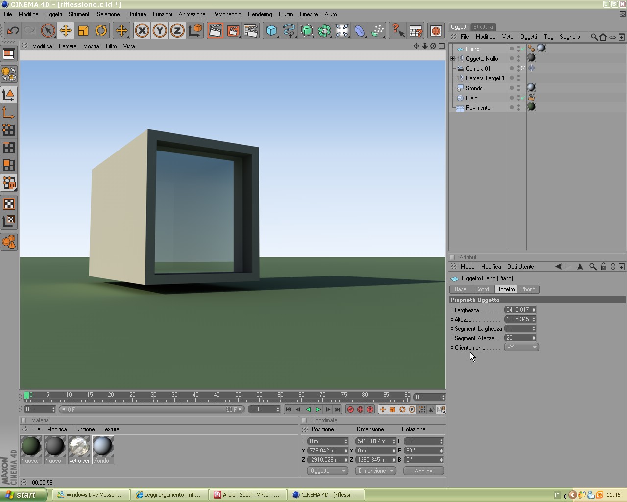 Ho soltanto apportato qualche modifica al vetro e abilitato le nuvole dello Sky anche per rendermi conto meglio se la riflessione funzionava!