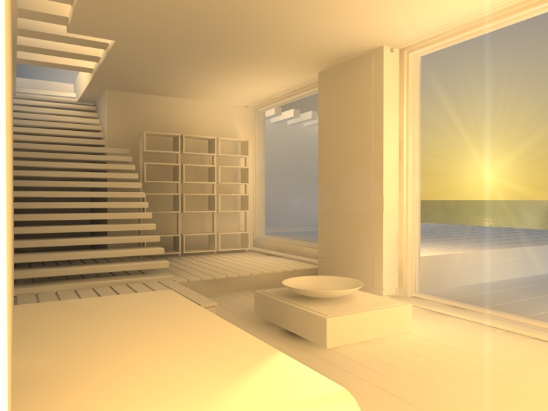 Quella con le luci area sarebbe l'illuminazione come l'avevo in mente infatti sono abbastanza soddisfatto di come è illuminato l'interno, quello che purtroppo non mi soddisfa è l'illuminazione del terrazzo, (infatti ho postato l'immagine senza l'illuminazione con le luci area per mostrarvi il comportamento anomalo della luce sun)
