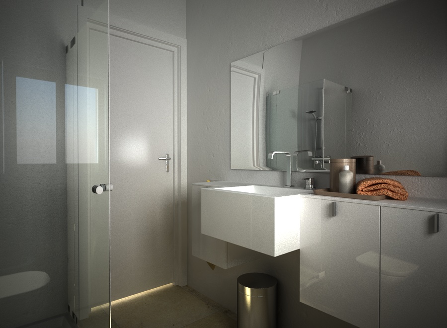 personalmente (riferito al bagno) avrei messo le piastrelle...bho ad occhio e croce non mi sembra un intonaco lavabile..... poi una immaginina nella finestra no!? la riflessione sul vetro della finestra nun me piace....