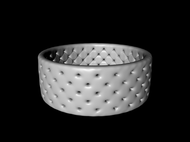 ho utilizzato un cilindro estruso internamente al quale ho ho applicato il metodo della guida, per ottenere la superficie chersterfield.