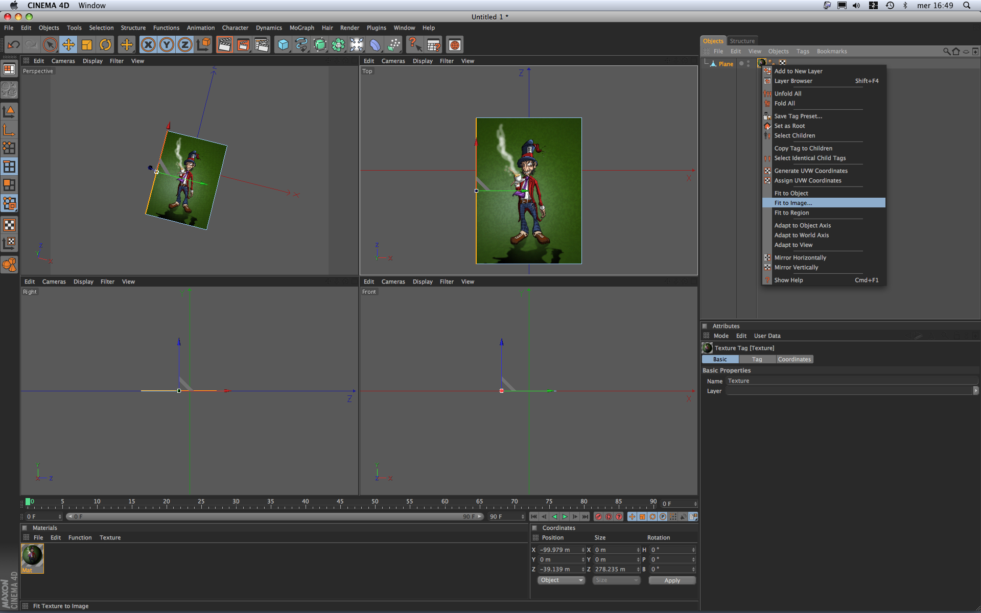 esatto e per fare in modo che non si distorga la texture fai tasto detro sul materiale fai fit to IMAGE e dopo aver selezionato l'immagine di riferimento fai anche fit obj to image...etvoillà!!!