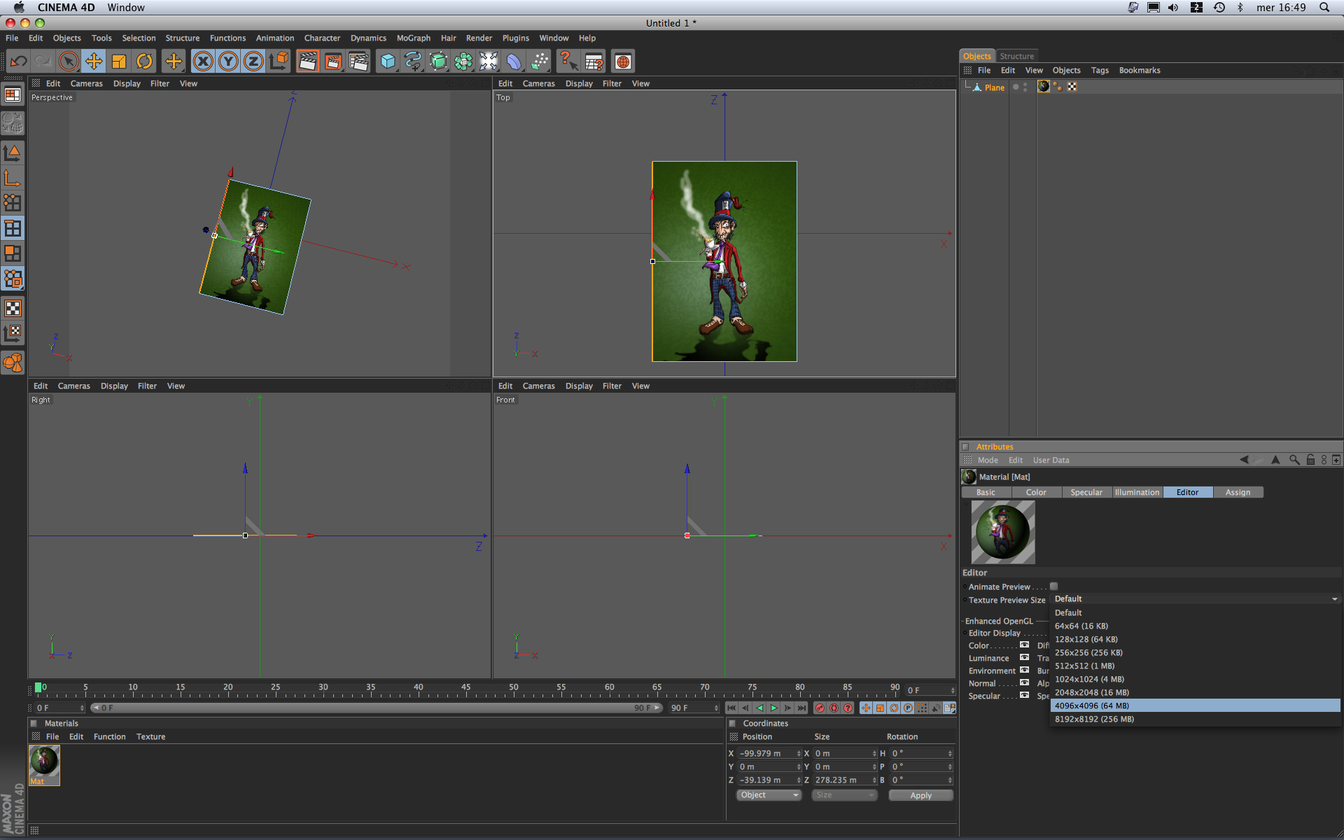 se vuoi che la tua immagine non venga distorta una volta che la applichi al tuo piano, dovresti dimensionare il piano proporzionalmente alle dimensioni della texture