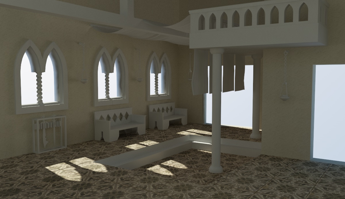 Allora, ispirato dallo stile di prince of persia, mi sono messo a fare questo interno. Come vi sembra? Sono ben accetti consigli e dritte, e per favore datemi una mano con l'arredamento perchè non so proprio cosa metterci!!!:roll: