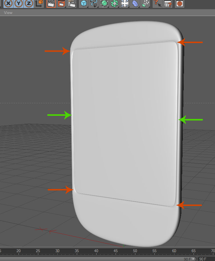 Se sposto il loop di lati indicato, per ottenere il riquadro del display, mi si stonda/squadra la mesh...se ad es vorrei fare il display che parte da vicino la stondatura, con il taglio loop avrei gli spigoli quasi netti