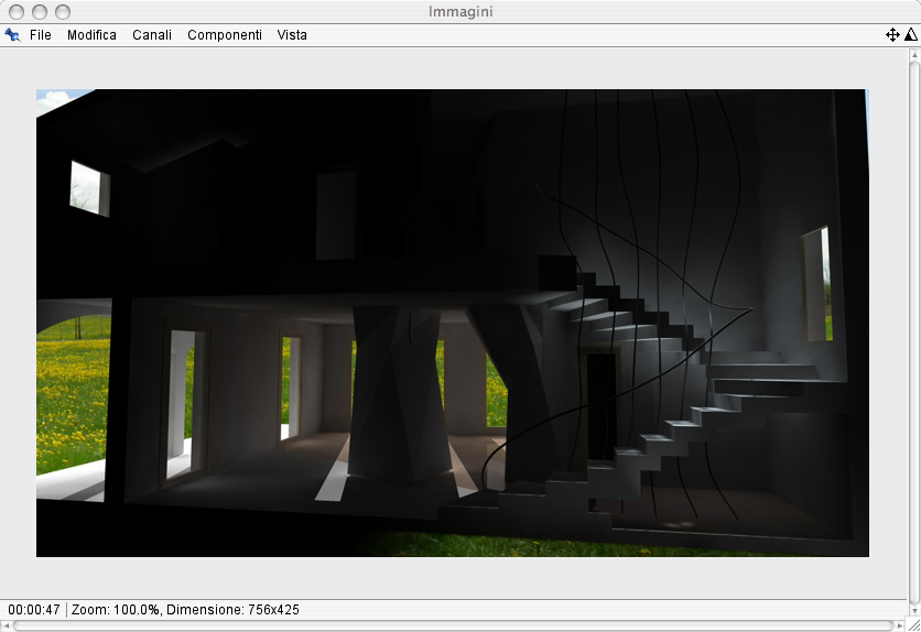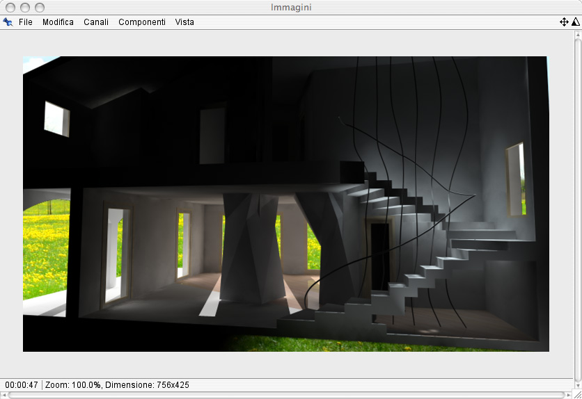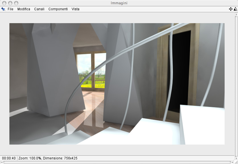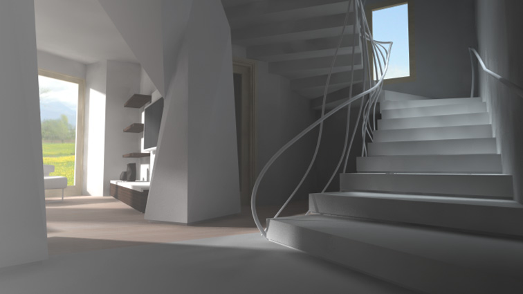 Tutto quello che vedete modellato l'ho realizzato io di sana pianta senza nessun punto di riferimento con l'utilizzo di un cad, per la modellazione del corrimamano della scala ed i pilastroni sgembi con cinama 4d.