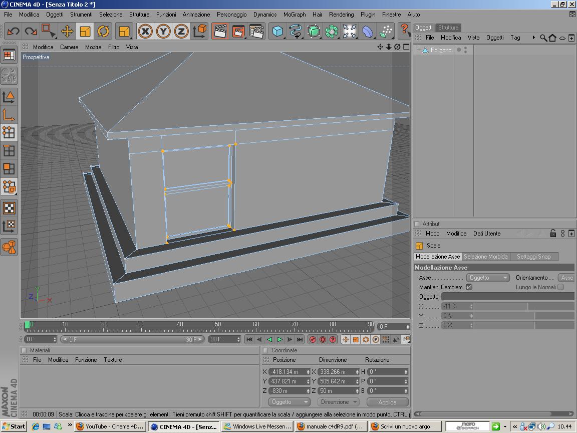 Salve a tutti. Come posso visualizzare gli assi su un oggetto poligono? In pratica stò svolgendo alcune semplici esercitazioni per prendere confidenza con il software. Nel caso specifico dovrei restringere la porta di questa piccola casa con il comando "scala" in modalità "punti, il problema è che non riesco appunto a visualizzare gli assi e quindi mi si restringe nelle 2 direzioni.