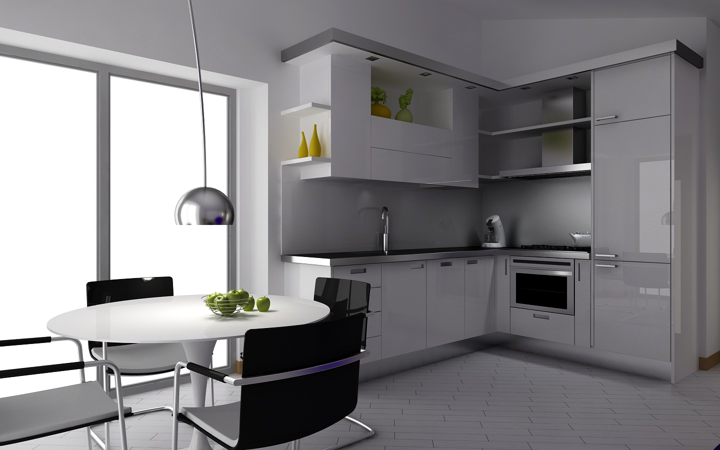 cmq mi piace, io farei in modo di far arrivare la luce sulla cucina da qualche parte, giusto x fargli proiettare qualche ombra :)