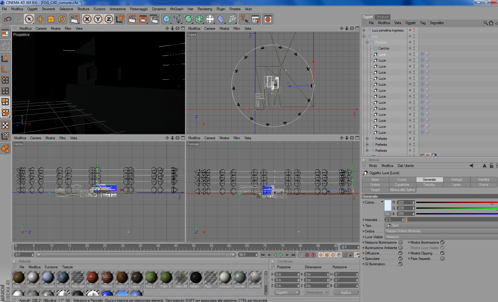 Ho fatto le luci a cilindro e non a semisfero perchè dovrò fare delle viste anche da dietro l'edificio.