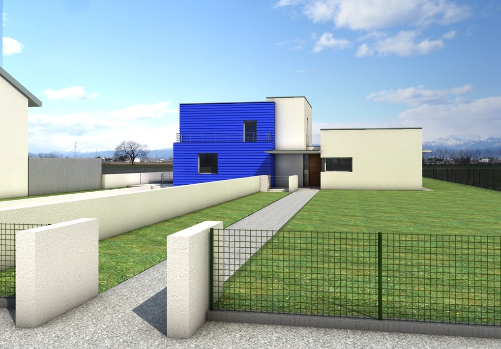 Il primo tentativo ho posizionato delle luci attorno alla scena puntate sull'edificio di bassa intensità (2%) ed uno sky. Posizionando poi un cilindro con materiale di un panorama pereseguire lo sfondo. Senza IG.