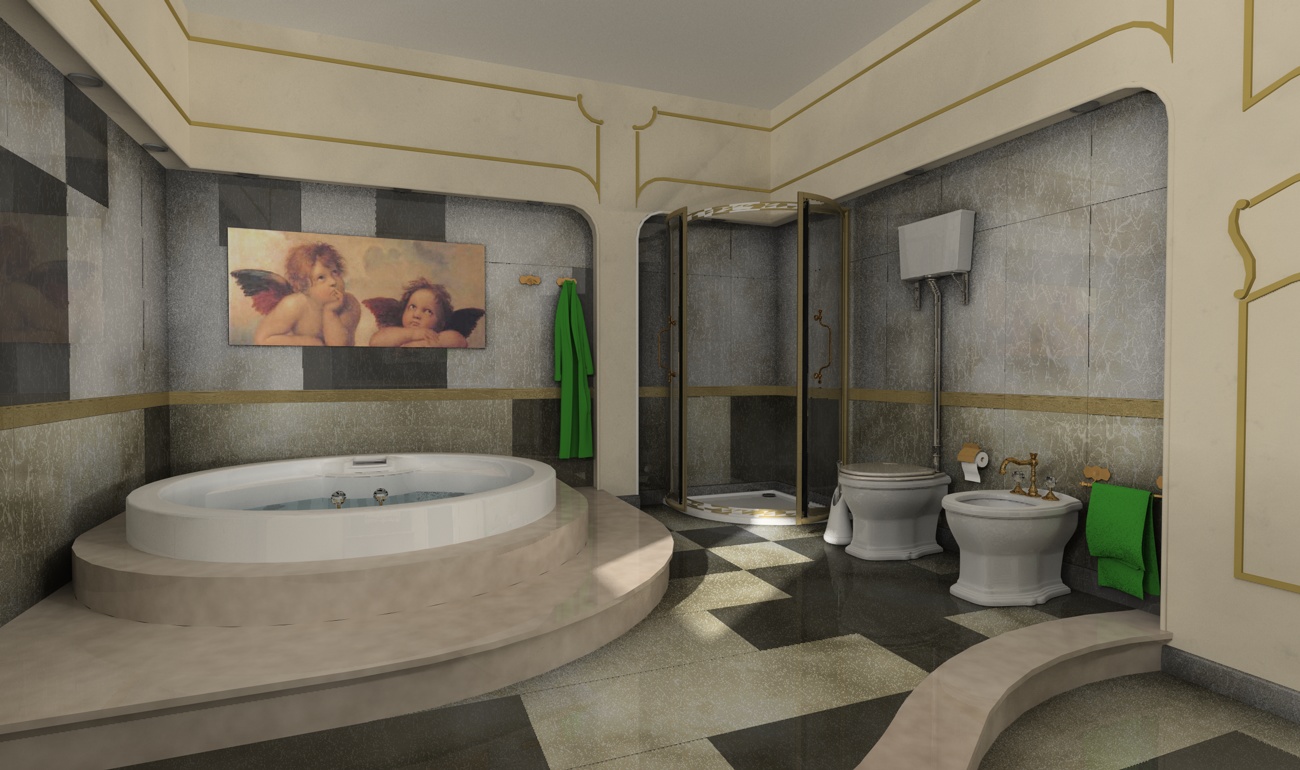grazie dei consigli ragazzi. il modello è ancora incompleto mancano ancora un bel po di cose, riguardo i sanitari ti do ragione (non li metterei nel mio bagno nemmeno regalati) ma la tipologia è stata scelta dal committente. provo a modificare i rivestimenti cercando di renderli più lucidi.