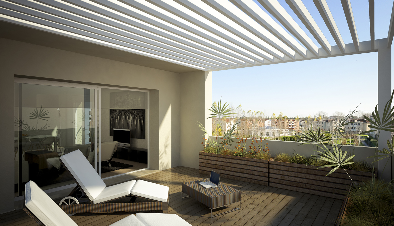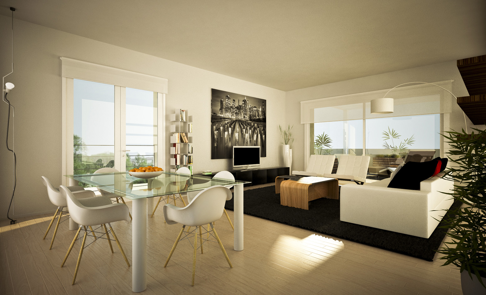 Si tratta di un soggiorno e terrazza di un appartamento all'ultimo piano di un complesso residenziale.