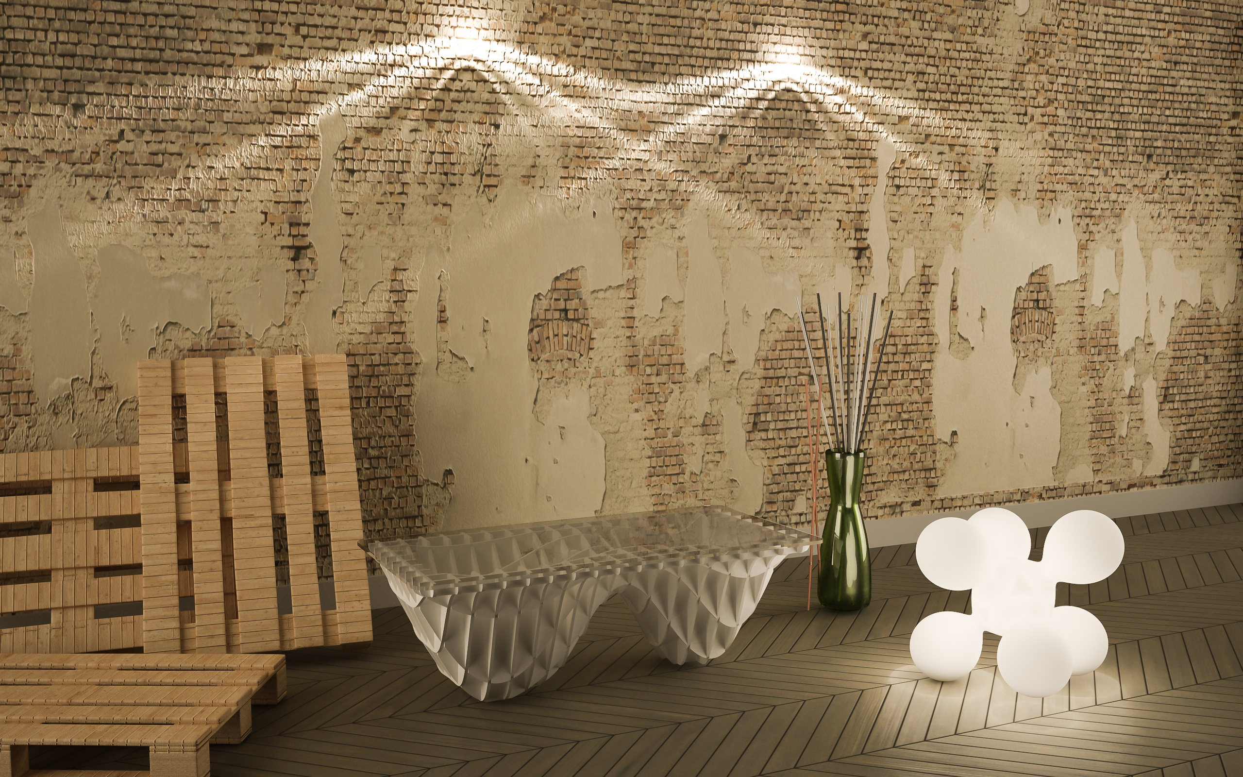 Non capisco i vari abbinamenti, il muro fatto in quel modo, i palletts vicino a quegli oggetti di design che oltretutto sono carini, ma poco valorizzati in questa scena...