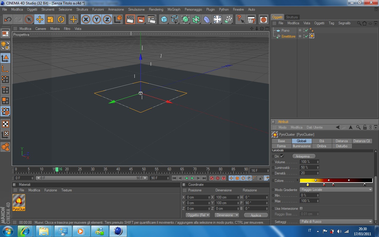 file - shader - pyrocluster volume tracer e poi lo applichi all'oggetto ambiente