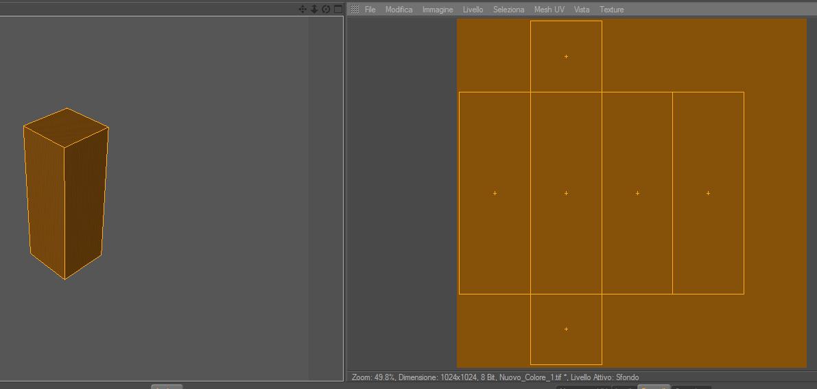1 -ho creato un semplice cubo allungato ho selezionato il lato per permettergli di essere steso nella mappatura..