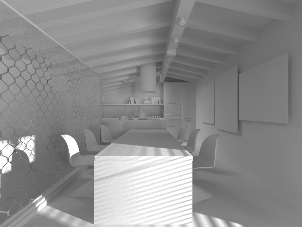 Questo è il risultato ottenuto toglieno l'occlusione ambientale ed aumentando leggermente la forza delle luci poste sulle finestre.