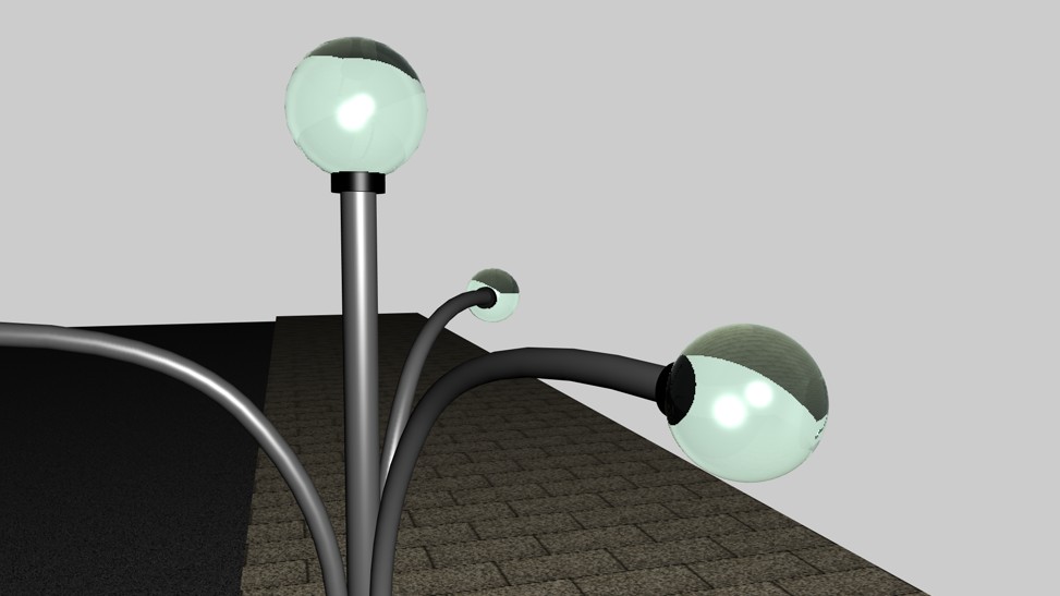 Queste quattro luci dovrebbero essere quasi sferiche. Dovrebbero illuminare per un raggio di circa 300° e poco piu'. Le 4 lampade sono lampade sferiche. In verita' come puoi vedere non ci sono lampadine al loro interno, volevo fare una cosa piu leggera. Pero' se devo modellare per forza una lampadina lo faro'. Non so se appunto la luce (sempre parlando di 3d) dipende appunto dalla modellazione di una vera e propria lampadina o se si puo' fare gia' da cosi'. Dimmi tu...