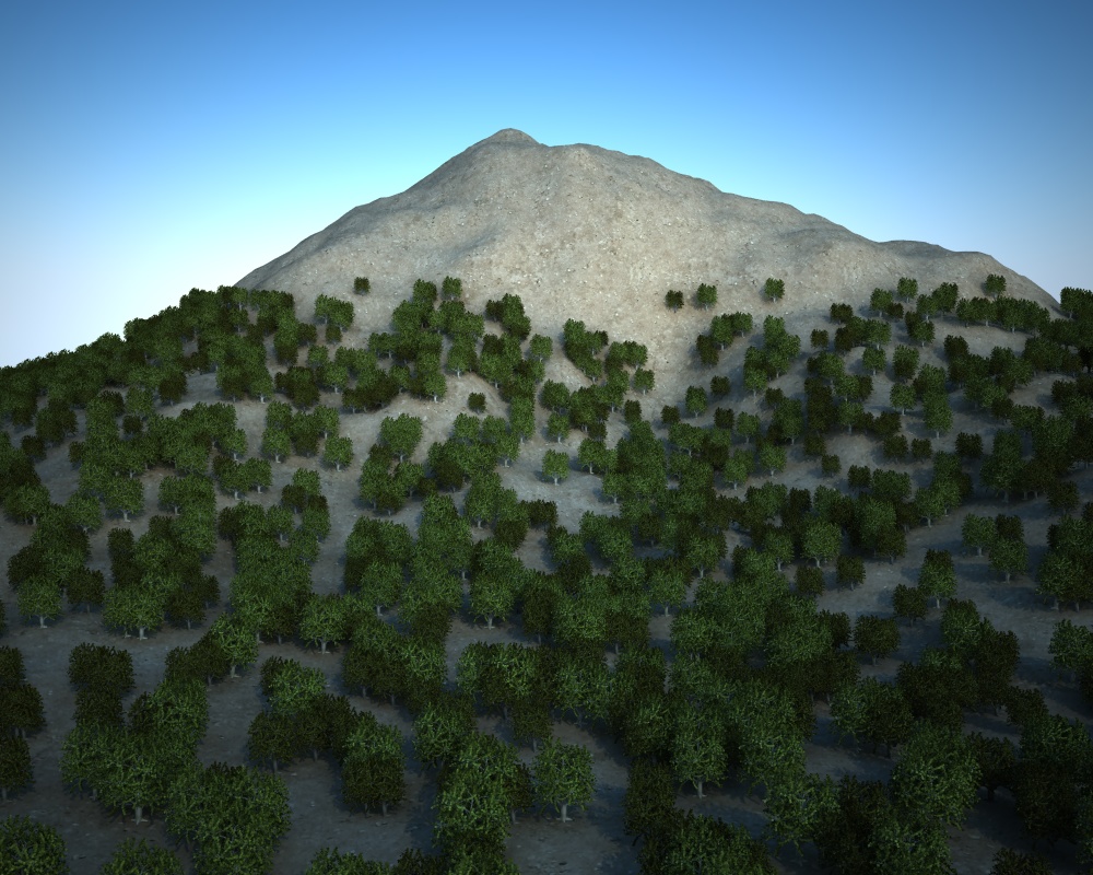 Ragazzi, come si potrebbe fare una texture di una montagna? il mio intento sarebbe far si che nelle zone di altitudine meno elevata ci sia terra, mentre a salire roccia e neve. qualche consiglio? Metto un'immagine del rendering a cui sto lavorando.