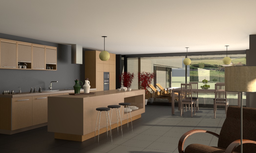 Che ne dite dell'illuminazione? Ho usato luci area alle finestre e lo sky, IG con profondità diff. 3