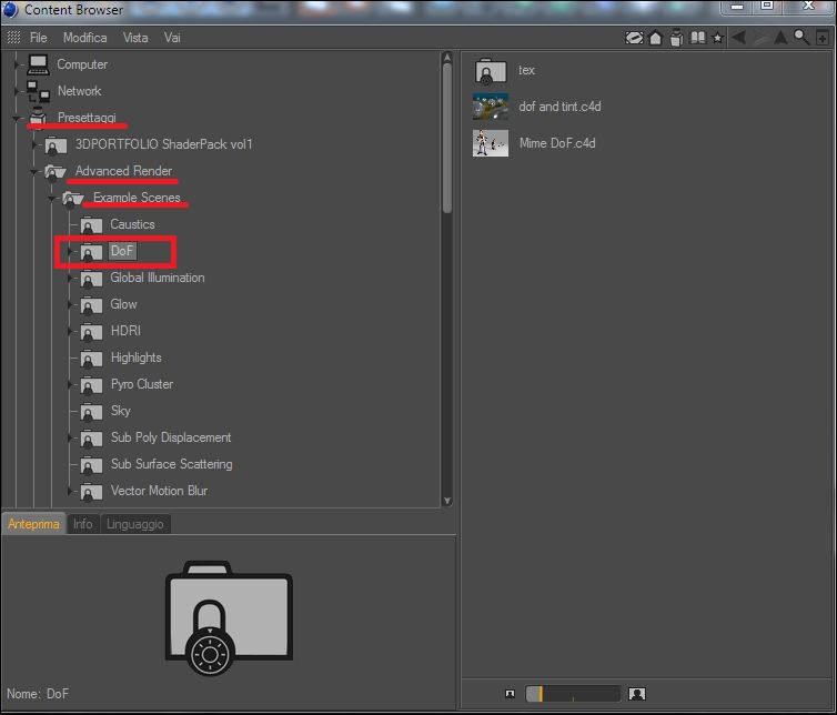 Se non ti è chiaro cerca "Profondità di campo" (oppure "depth of field" o DOF) nell'help di base di cinema. lì lo spiegano molto bene.