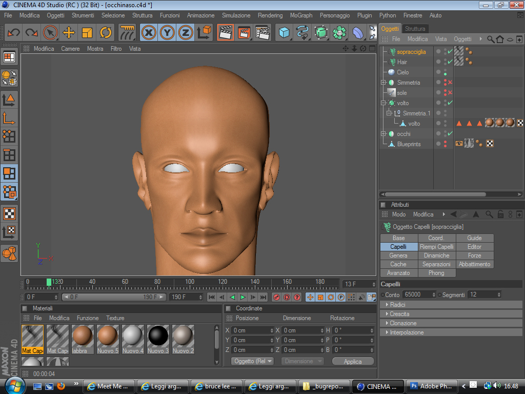 Ho creato l'oggetto hair, ho fatto cadere i capelli e ho dato loro un valore per infoltirli.