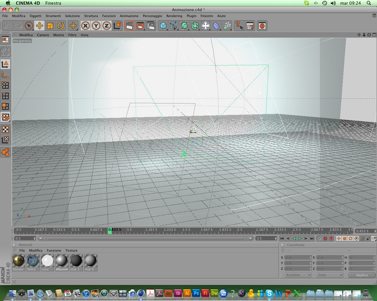 Sto preparando la scena per una animazione. Pensavo di proporla all'interno di un ambiente neutro, quindi sullo sfondo un piano bianco e il pavimento con la stessa cosa.