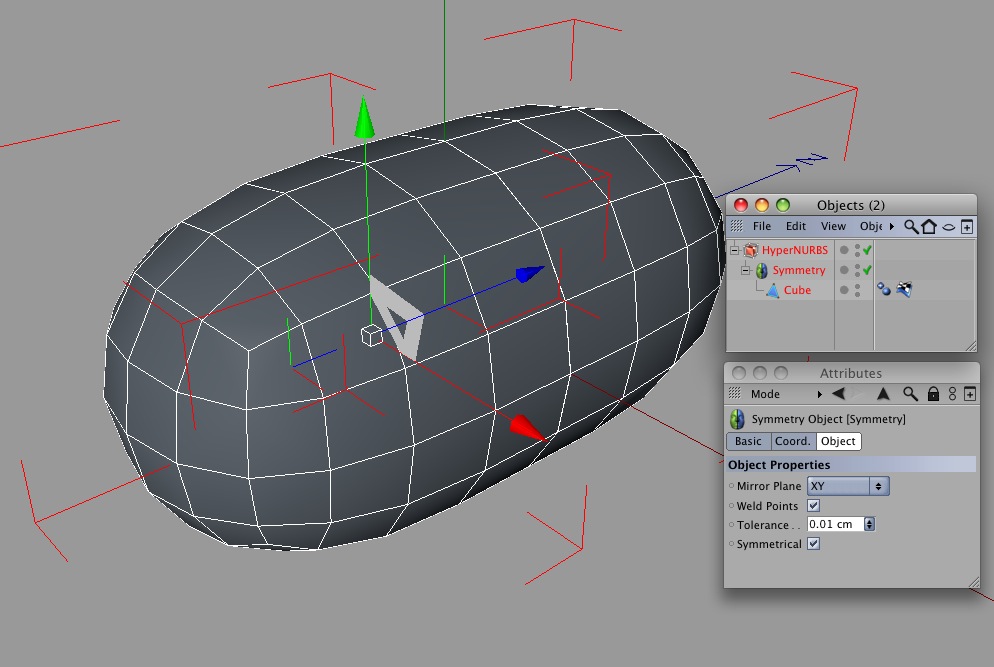 ora la forma è banale ma se ho a che fare con forme un po' più complesse i risultati sono catastrofici, perchè nel punto di giunzione della simmetria l?HyperNurbs sbaglia ad operare e genera superfici sbagliate.