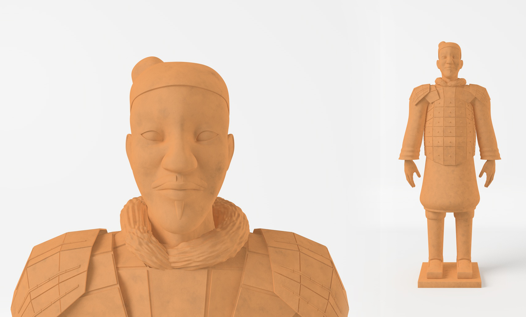 Ho quindi pensato ad uno pseudoguerriero cinese, estramente grottesco nella forma e nell'abbigliamento, schierato all'interno dell'esercito di terracotta ( a sostituzione di una delle statue ).