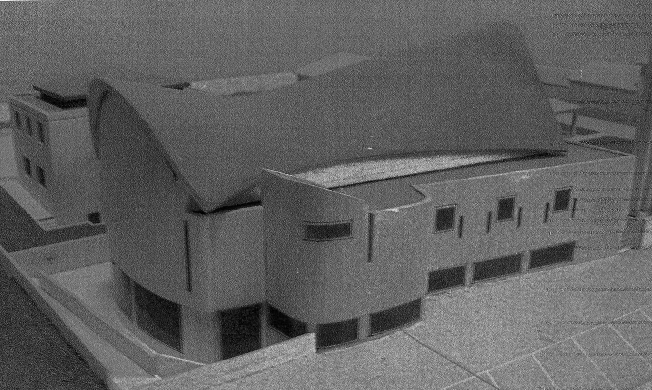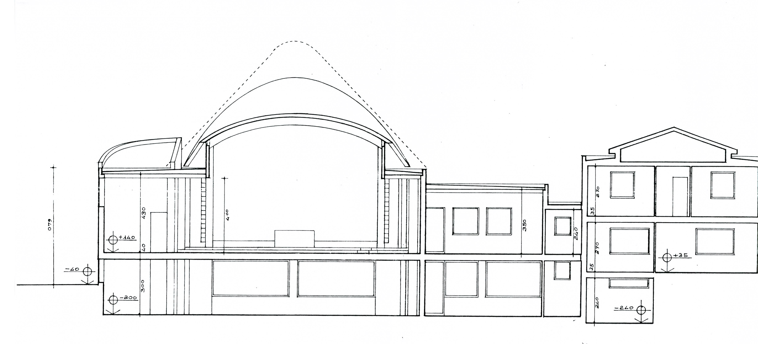 In sostanza questo tetto inizia con una parabola e finisce con un semi-cerchio. Una specie di paraboloide iperbolico.