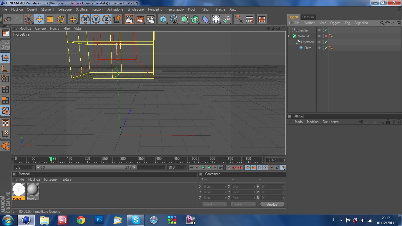 vorrei cimentarmi in questa avventura con le metaball ed emettitore per cercare di creare un getto di una fontana.