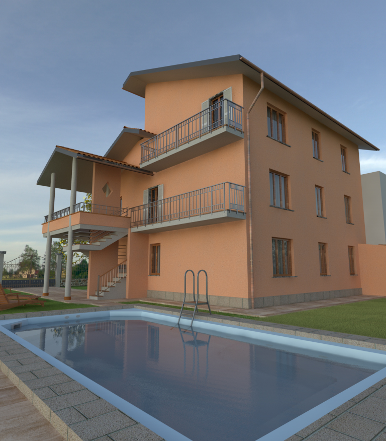 rivedrei un pò in generale la modellazione, dai parapetti, ai canali di gronda, ai pluviali, alle ante ecc, in quanto peccano parecchio per raggiungere un buon livello (se vuoi e puoi fare queste modifiche)