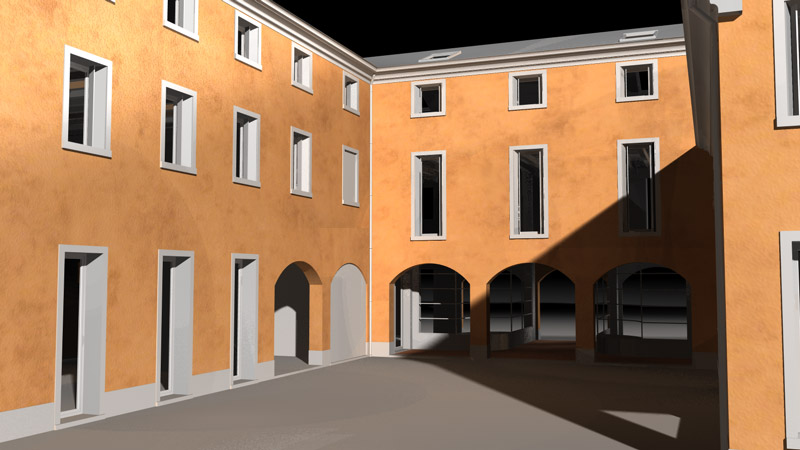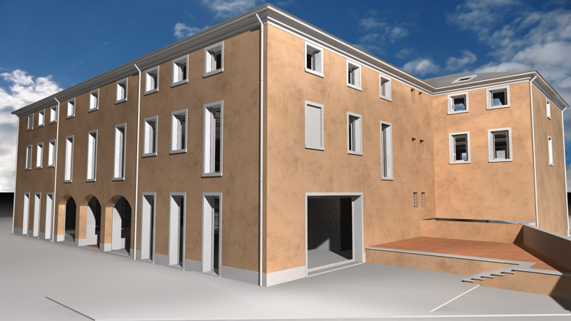 Tratta di un ricostruzione di un palazzo in centro storico all'interno di una cinta muraria.