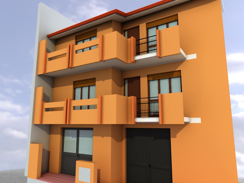 Il resto, per il momento, è di contorno. In seguito vorrei rifinire meglio le porte d'ingresso, i vetri, la gronda e il pavimento davanti ai garage.