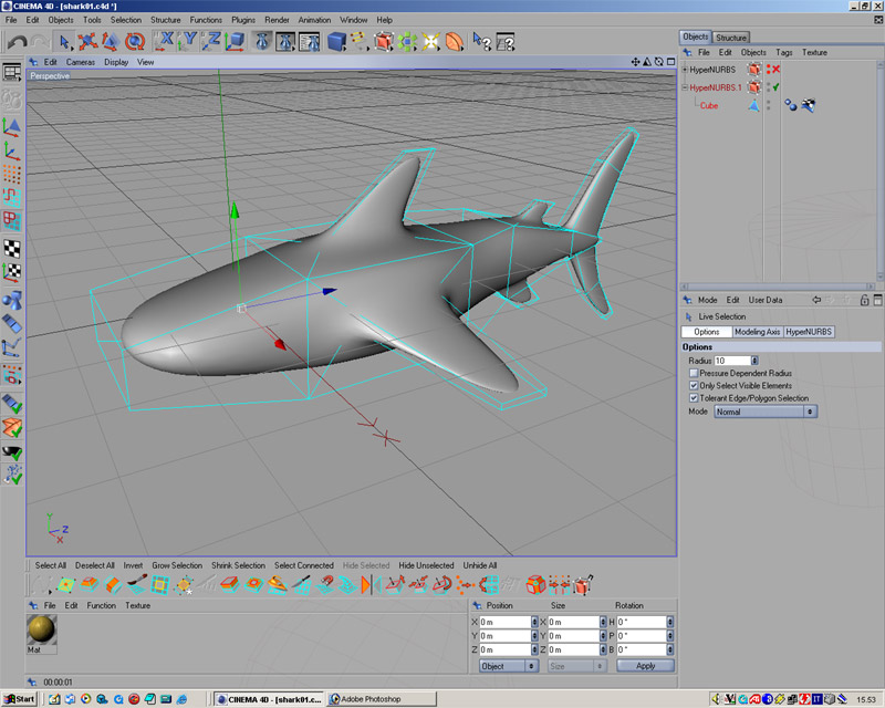 Il fatto è che il mio squalo è un blocco unico e quando tento di usare il coltello con il loop inserito mi seleziona tutta la figura.