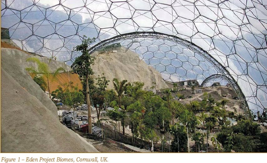 Le deformazioni si vedono anche ora, scegliendo la forma esagonale ogni vetro esagonale dovrebbe essere perfettamente piano e perfettamente uguale a tutti gli altri.. altrimenti povero vetraio... da un punto di vista strettamente architettonico/ingegneristico è una forma inaccettabile per raggi di curvatura così stretti.. ),