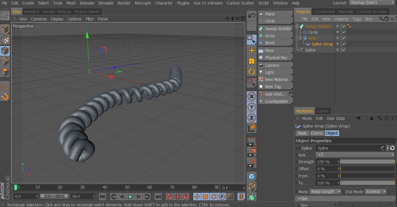 Scusa ma non ho capito........ :) :) Per modellare un cavo della cornetta dei vecchi telefoni il procedimento è lo stesso che hai già adottato: solo che nelle proprietà della Spline Helix devi agire su End Angle immettendo un valore altissimo (per aumentare il numero delle spire) e poi su Start Radius e End Radius per "stringerlo" :) :)