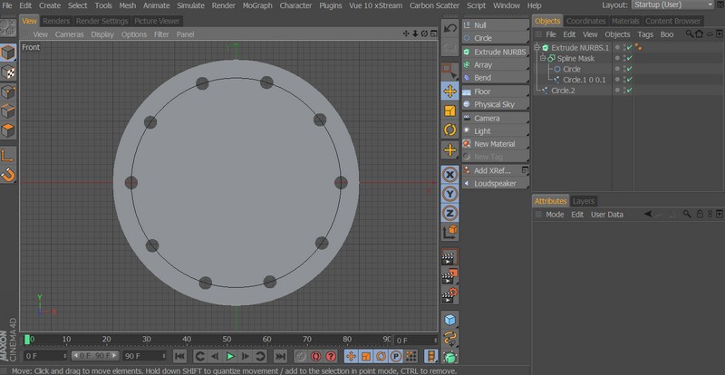 fatto ciò metto tutto sotto extrude nurbs come da screen allegato ma unica estrusione che vedo è quella del disco