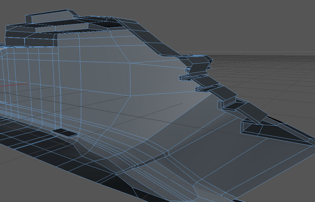 Per quanto riguarda la modellazione, ho basato il profilo grezzo della nave su una proiezione trovata su internet di un'altra nave CC (ris. 640*480, ti lascio immaginare... -.-), poi per i particolari ho usato foto trovate su Google (purtroppo tutte in prospettiva, ma vabbè, sempre meglio che niente)