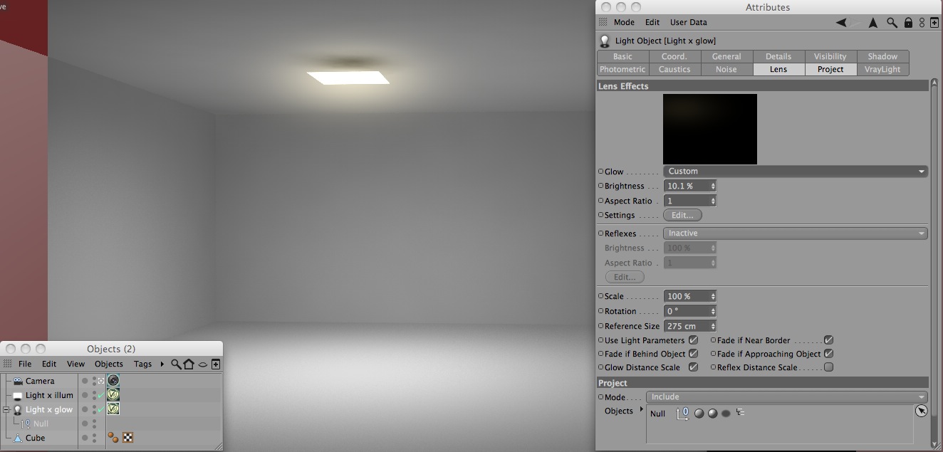 Per quanto riguarda l'alone della luce nell'immagine che hai postato non c'e' un modo diretto in vray per ottenerlo (almeno fino al prossimo update in cui pare saranno aggiunti glow e flares). E' possibile però usare il post effect Lens Effect (attivabile nelle impostazioni di render) e con qualche accorgimento sfruttare gli effetti Lente della luce standard di cinema. Dato che questo effetto va in base all'intensità della luce e le intensità tra vray e cinema sono diverse, non è facile controllare il glow; oltretutto funziona solo con alcuni tipi di luci (non con le area ad esempio). La soluzione migliore quindi è creare un duplicato della luce ed usarlo solo per fare il glow, facendolo agire esclusivamente su un oggetto nullo (tramite il pannello Progetto della luce standard di c4d) escludendo così la sua influenza sull'illuminazione.