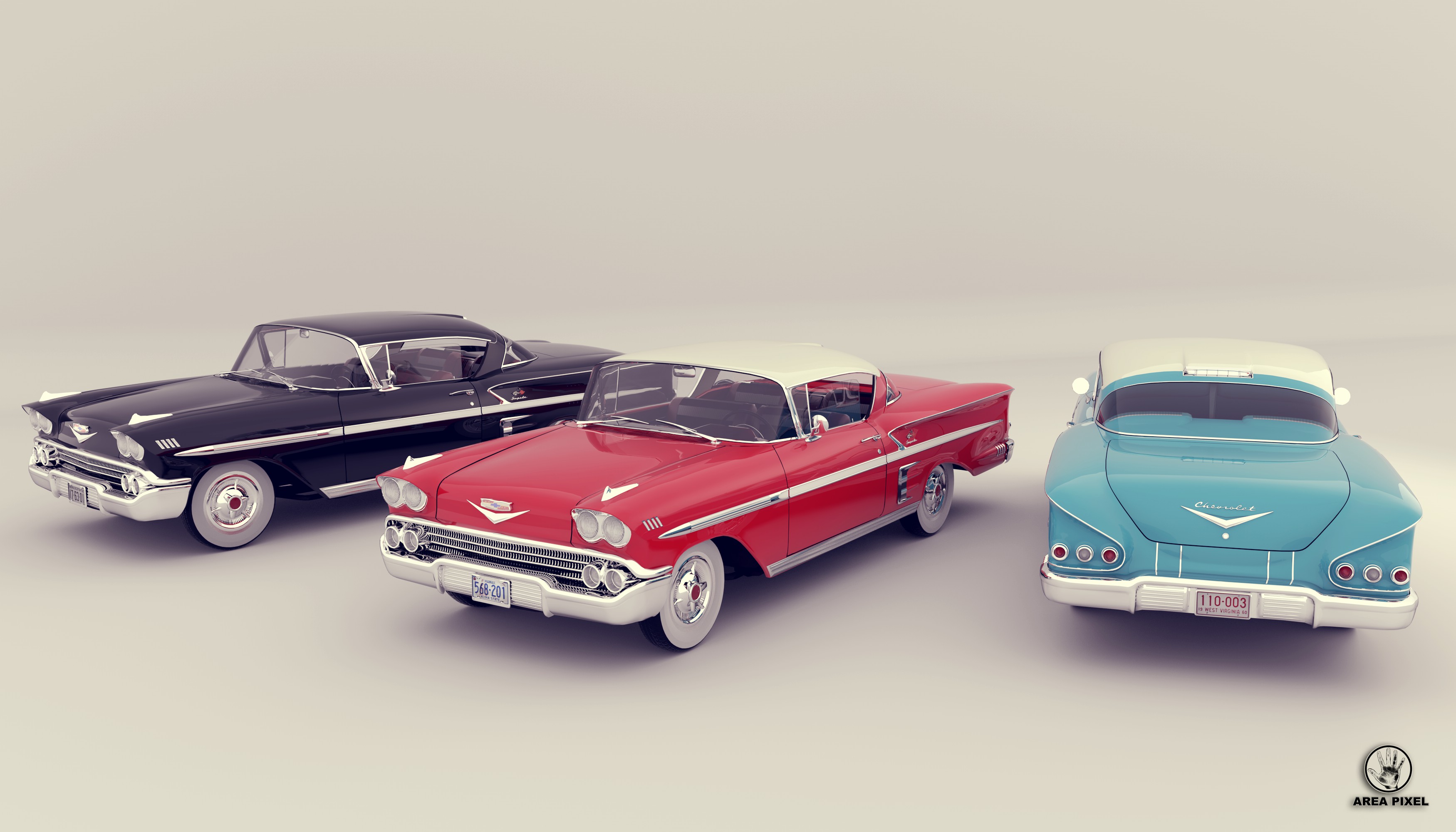 Per il colore dell'auto tutto dipenderà dalla scena, di certo quella azzurra è esclusa dalla "competizione", l'ho fatta solo per avere la terza versione per il render sopra postato.