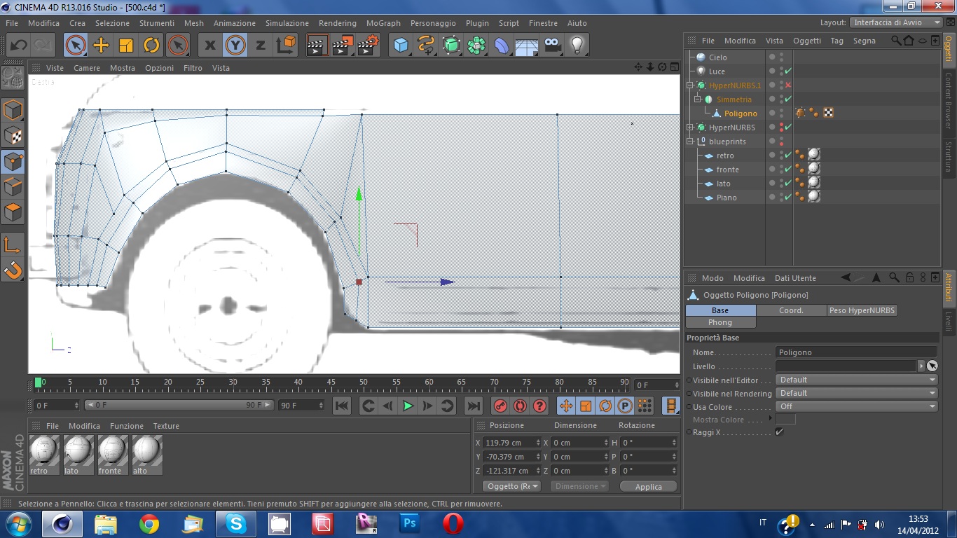 seguendo il tutoria e tenendo nuoni i punti che metteva, usavo pesa hypernurbs, e tagliando mi esce un casotto.