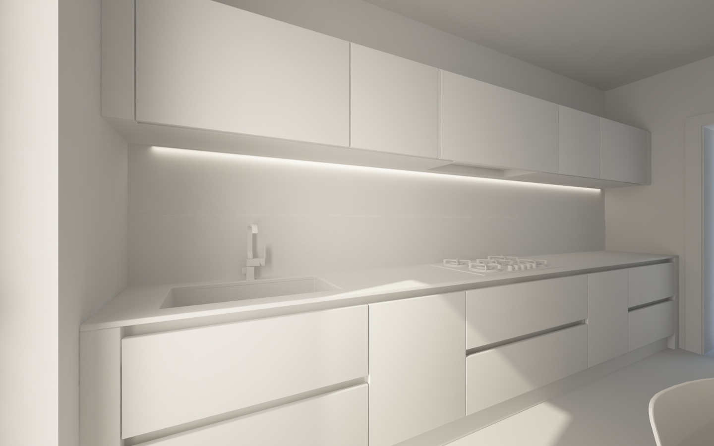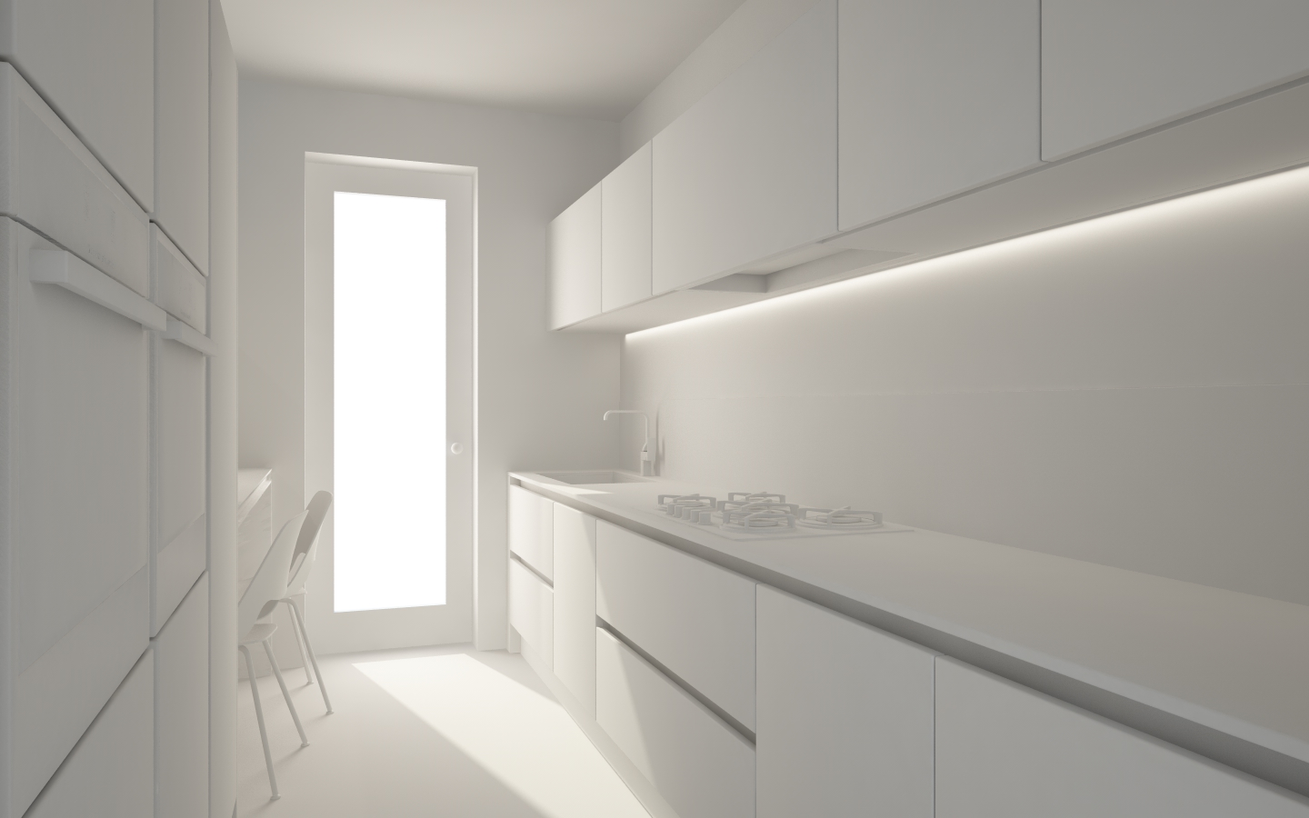 Per illuminare la scena... oltre alle luci artificiali non ancora ben definite... ho utilizzato un Physical Sun + Sky... luce area principale in prossimità della porta finestra e luce area di supporto in prossimità dell'ingresso in cucina... i parametri dei rendering non definitivi sono volutamente bassi per ridurre i tempi di queste prime prove...