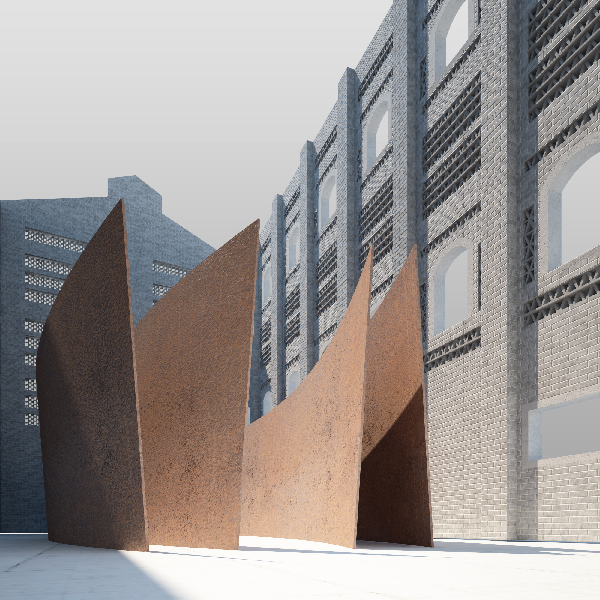 le pareti di mattoni della fabbrica sono troppo precise( ho usato uno shader),vorrei "invecchiarle" un po... per renderla + realistica. ho provato in post produzione con photoshop, ma il risultato non mi convince ancora....