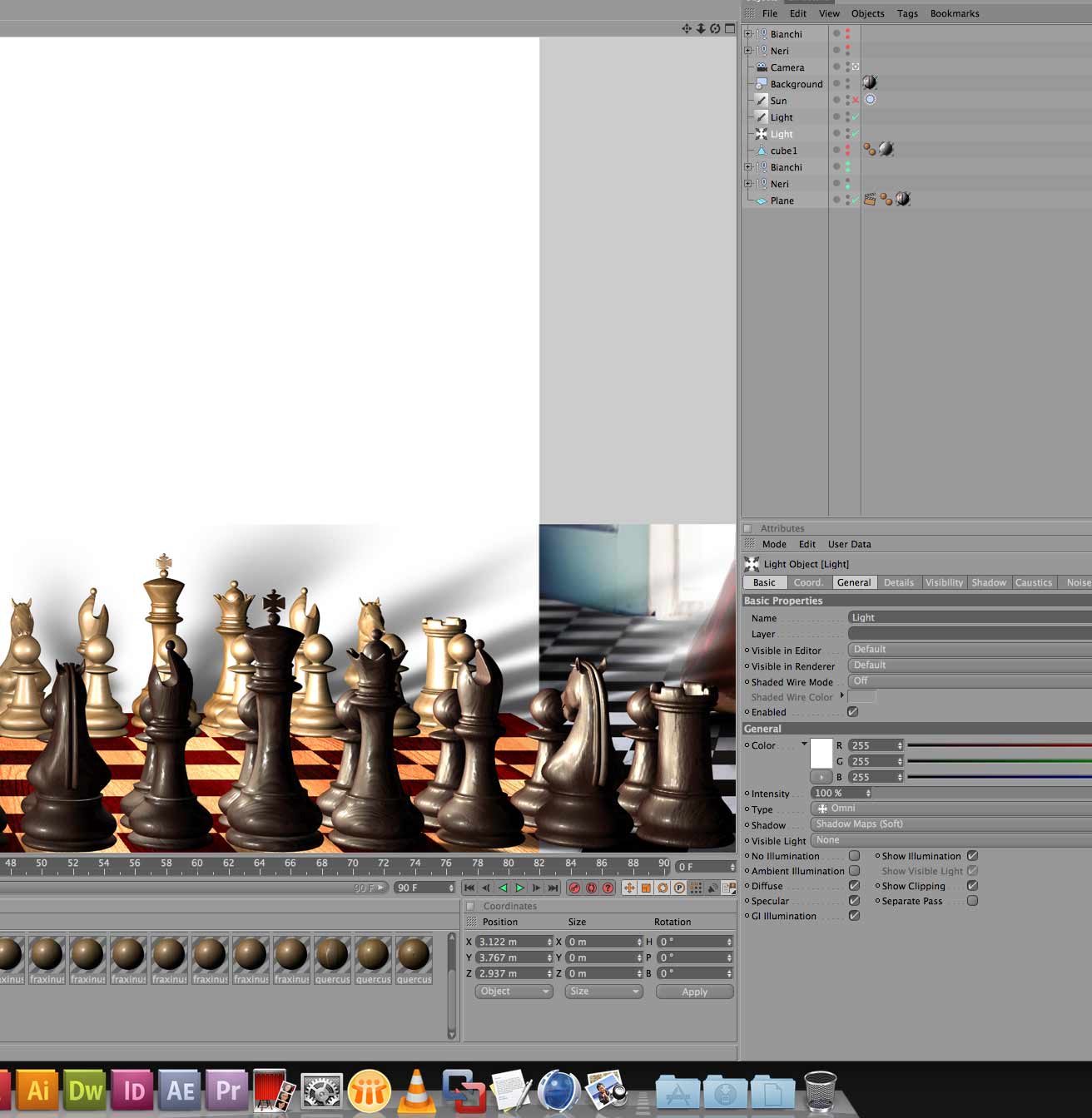 Guarda lo screenshot, praticamente ho messo una luce "omni" al centro della scacchiera, se guardi alla base dell'alfiere, del cavallo e del re in primo piano, vedrai che sulla scacchiera non ci sono le ombre... da che potrebbe dipendere?